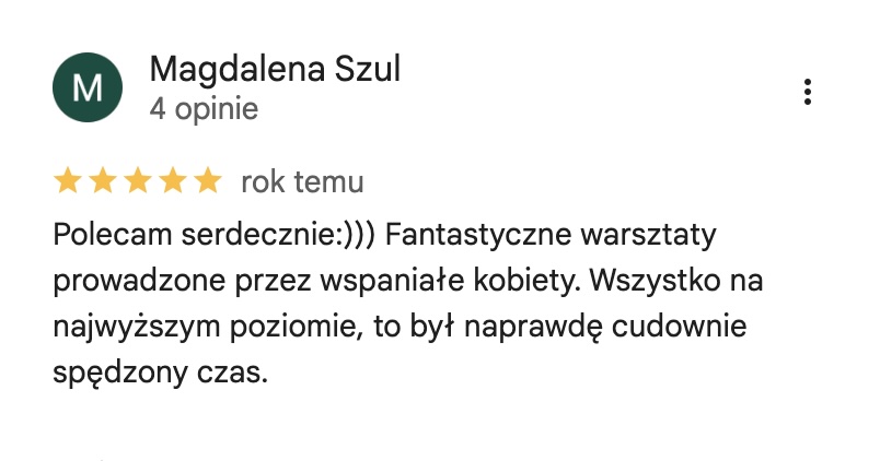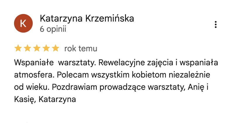 Jeśli zastanawiasz się czy zarezerwować miejsce na moich kobiecych wydarzeniach przeczytaj wybrane opinie uczestniczek poprzednich warsztatów. Możesz też sprawdzić opinie o mnie na wizytówce Google.